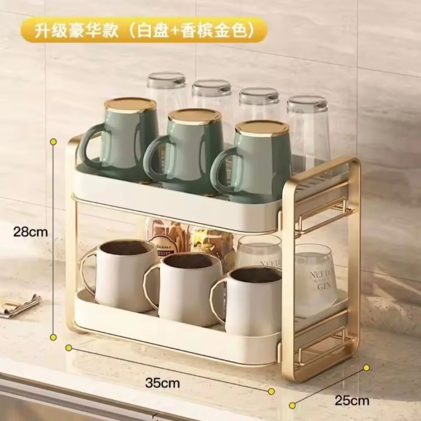 This premium storage solution is designed to keep your kitchen organized, dry, and stylish. With two spacious tiers, you can store a variety of items such as dishes, glasses, utensils, and more.