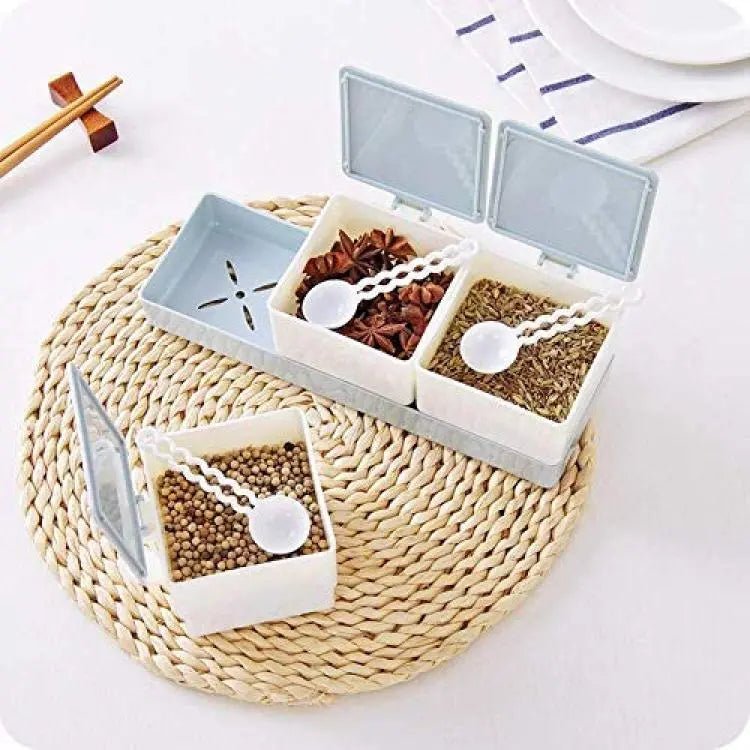 This storage containers with 3 compartments, spice sets are tightly lidded storage container.