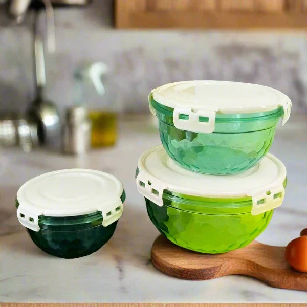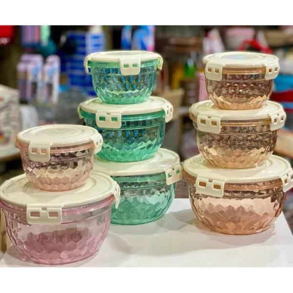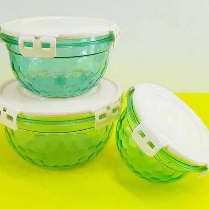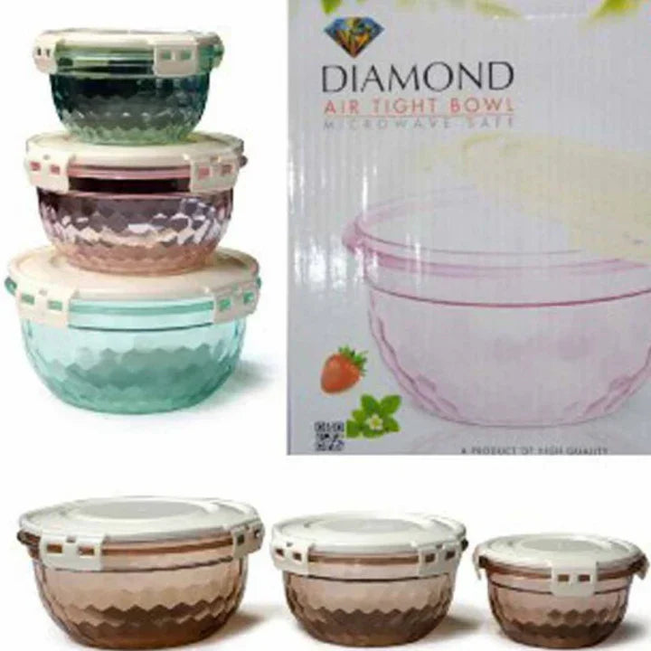 These 3 Pcs Acrylic Diamond Air Tight Bowls are a must-have for any kitchen! The air-tight seal keeps food fresh longer, while the beautiful diamond design adds a touch of elegance to your meal prep. Made of durable acrylic, these bowls are perfect for everyday use.