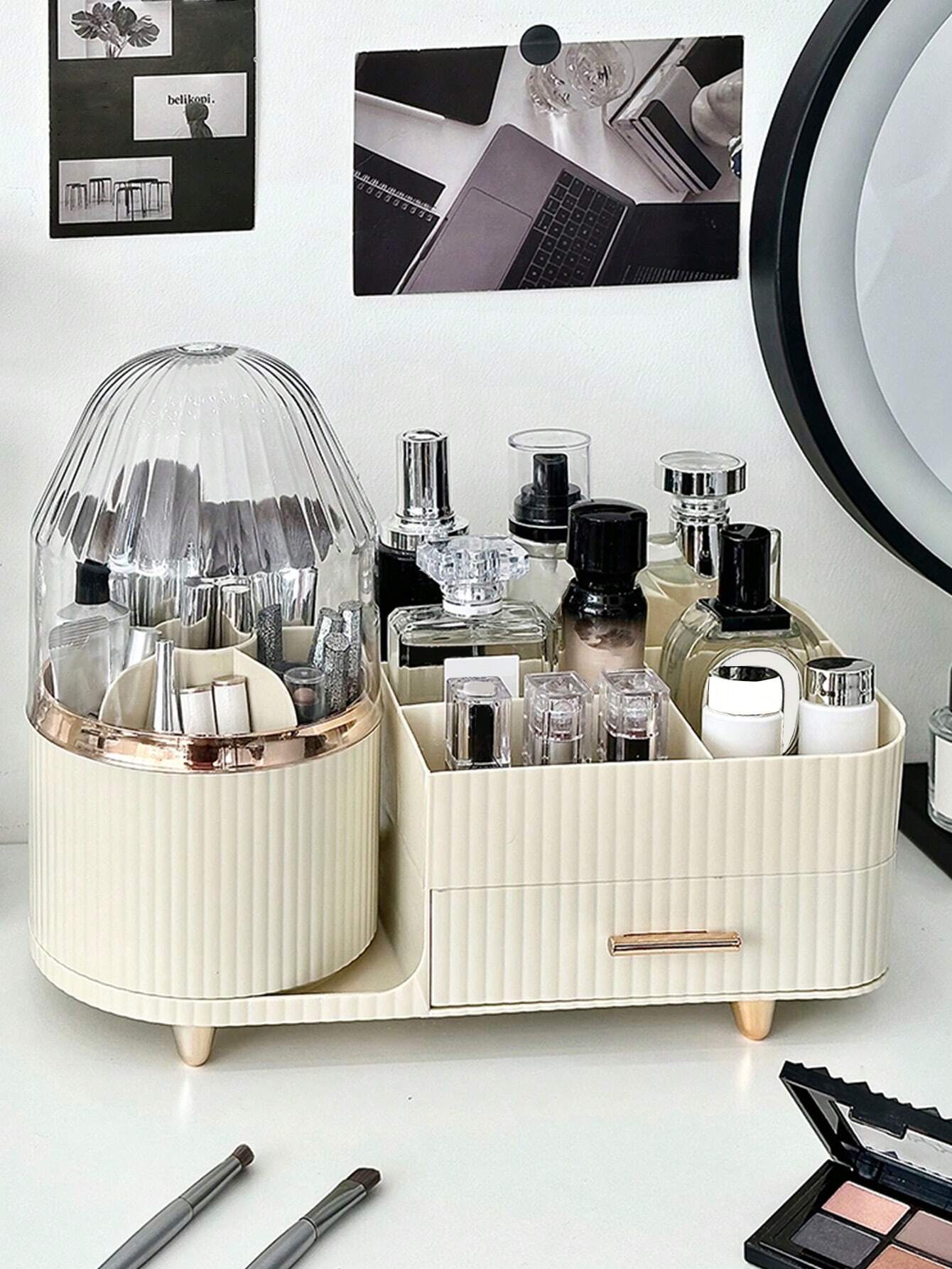- Fashionable and durable: the simple and simple milky white color of the cosmetic make-up organizer fits perfectly on the dressing table. The large storage space provides space for your cosmetic and skin care products, saves space and keeps your desk tidy.