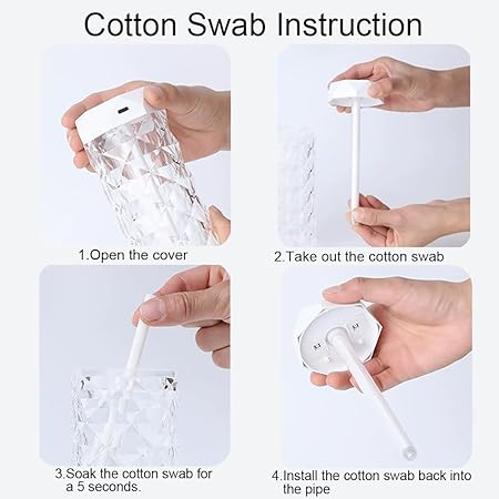 - 【Warming Tip】For better user experience, please soak the cotton swab before use and do not lose the wire spring when change the cotton swab. Package included 1x humidifier, 1x USB cable(wall charger not included), 1x User Manual, 1x cotton swab
