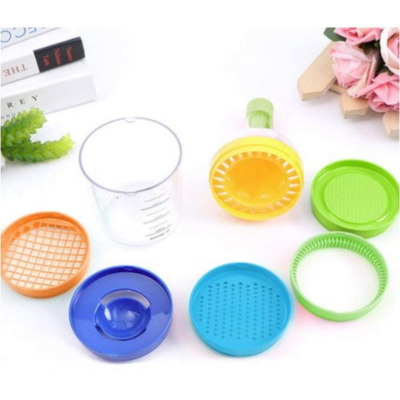 - Multifunctional bin bottle kitchen tool, with 8 functions - Funnel, Lemon/Orange Juicer, Spice Grater, Egg Masher, Cheese Shredder, Can Grip/Opener, Egg Yolk Separator & Measuring Cup.