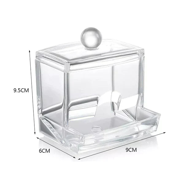 - Clear cosmetic container for cotton swabs, cotton pads, transparent is easy for you to locate items. Being compact, it saves space and is convenient to take with, being glossy, it has a nice look.