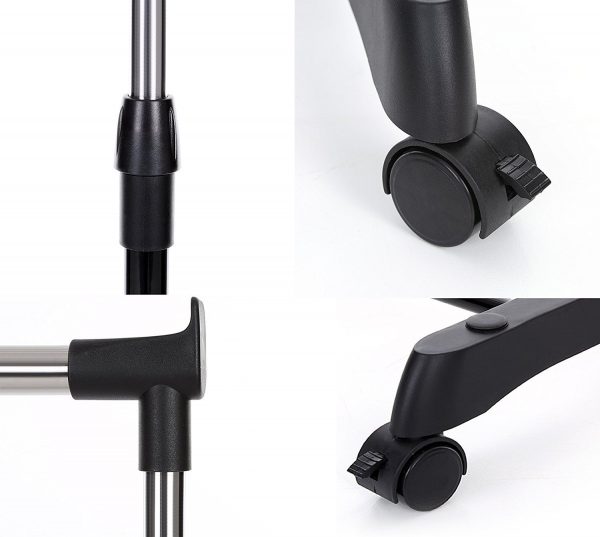 DURABLE & MULTI-FUNCTIONAL CLOTHES RACK: Double sturdy clothes rails with high quality plastic parts, 45 lbs. load capacity and provide 53 inches hanging space, ideal choice for household storage and clothes display for sales; Sturdy tubular bottom rack for shoe & luggage.