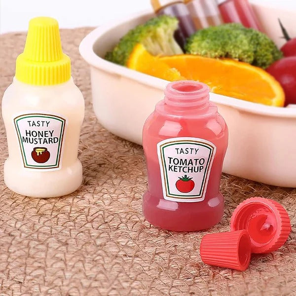 These portable condiment squeeze dispensers are perfect for holding honey, BBQ sauce, olive oil, ketchup, mustard, salad dressing and mayo, etc., can be easily put into the bento box, perfect for picnic, BBQ, trip and parties.