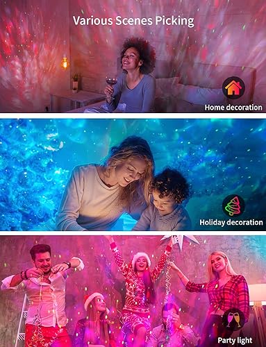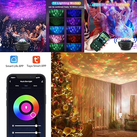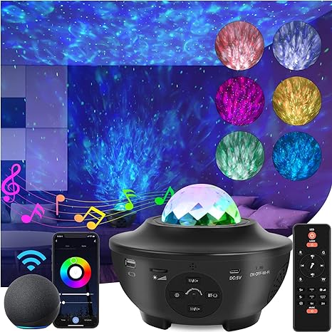 【Upgraded 3 in 1 Ocean Wave Star Projector】This galaxy projector for bedroom has been upgraded to 3 in 1 version of Ocean Wave Projector, Bluetooth Music Speaker and Night Light. Features 10 different color combinations that project blending stars, wave and nebula ,360° rotational dynamic projections and soothing aurora effects, the night light projector could turn your room into a starry castle and turns the ceiling into space and galaxy. Enjoy the beauty of space in the comfort of your home.