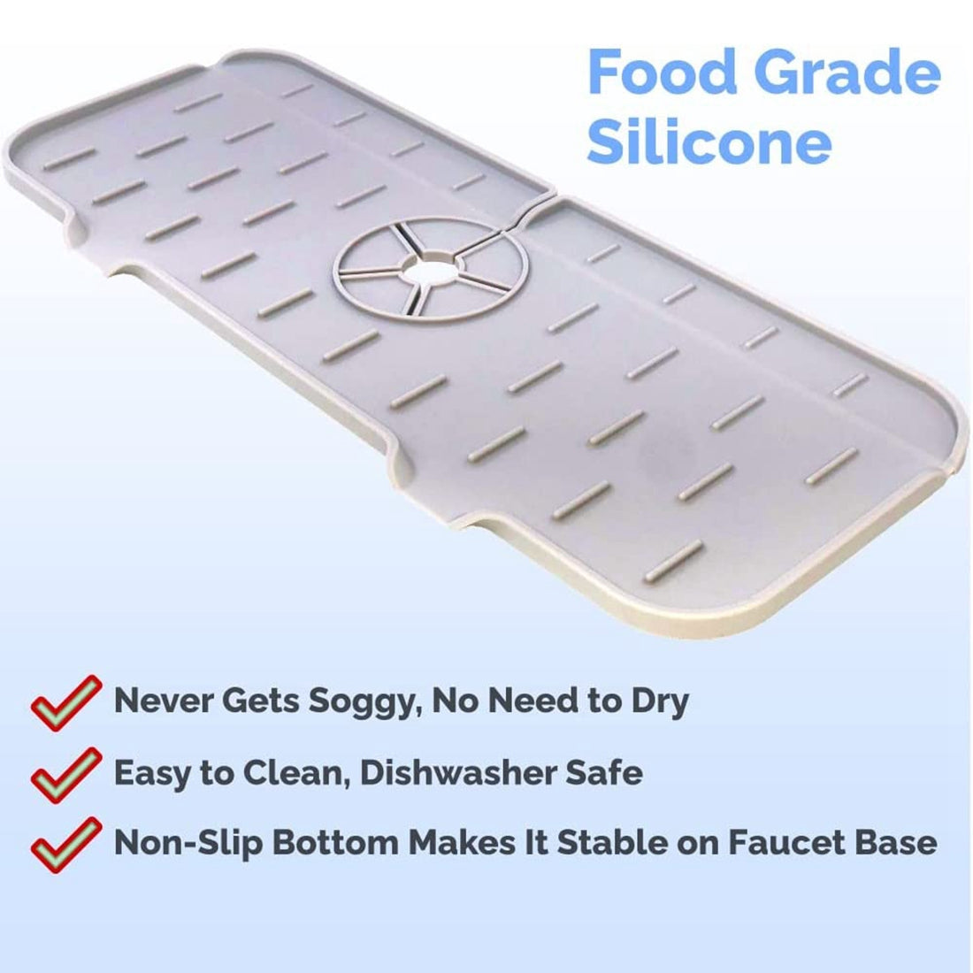 - Our faucet pads are made of high quality food grade silicone. It is reusable and durable. Unlike other materials, you don't need to spend more time drying it. With good abrasion resistance and durability, you can use it with confidence.
